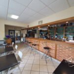 À l’entrée, une grande pièce de 37m2 vous accueille avec un bar bien équipé, incluant des groupes froids (5 portes), machine à câfé professionnelle et un moulin à câfé et quatre pompes à bière. On y trouve également deux toilettes, une douche et un lavabo. La vaste salle à manger de 80m2 adjacente est dotée d’un coin cosy avec cheminée, prête à être réaménagée selon vos envies.
