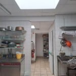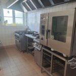 La cuisine professionnelle de 15,5m2 est entièrement équipée : grande chambre froide, station de lavage, deux grands éviers, réfrigérateur, congélateur, piano, bain-marie, grille, grand four, grande friteuse électrique 2 bacs et tout le nécessaire de vaisselle. Une seconde cuisine/plonge de 13m2 et une buanderie/arrière cuisine de 19,5m2 complètent l’ensemble.